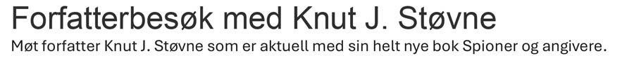 Møt forfatter Knut J. Støvne som er aktuell med sin helt nye bok Spioner og angivere.